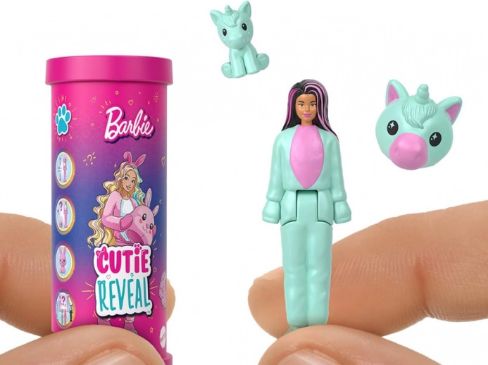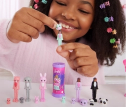 Mini păpușile BARBIE Cutie Reveal aduc bucuria dezvăluirii – ridică gluga costumului de animal și descoperă chipul unic, părul și stilul. Fiecare figură are talie mobilă și poate fi expusă pe un suport în formă de inimă. Include și un mini animăluț, cu care copiii își pot imagina ușor propriile povești.