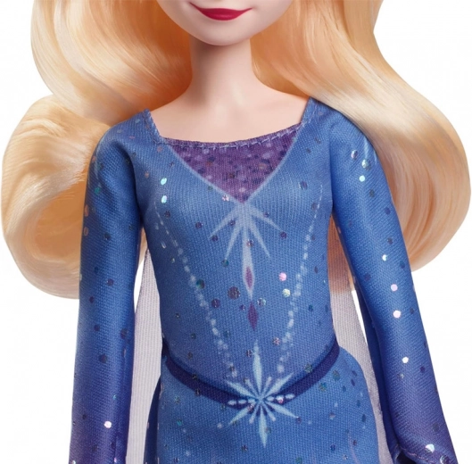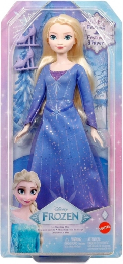 Păpușa Elsa, în rochie albastru glaciar cu accente mov și motive de stele și fulgi, aduce atmosfera iernii în orice joc de copii. Datorită membrelor articulate adoptă cu ușurință poziții de patinaj și este perfectă pentru scenete din FROZEN.