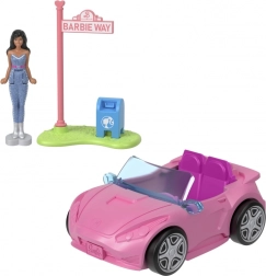 - Conținutul pachetului: mini păpușă, cabriolet roz, insuliță cu indicator „Barbie Way” și cutie poștală