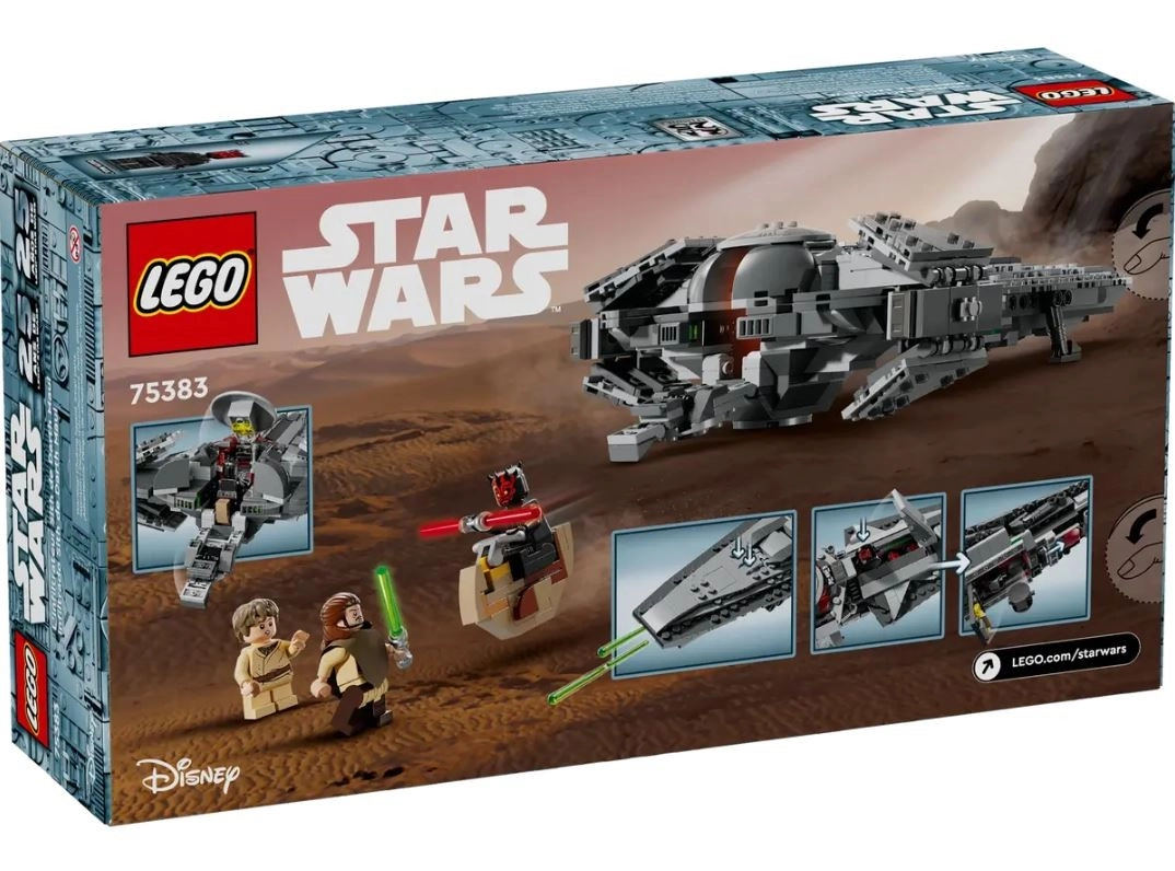 Intră în lumea duelurilor galactice cu nava iconică a lui Darth Maul. Acest model ingenios îi va încânta pe copiii de la 9 ani în sus și pe colecționarii adulți. Desfă aripile pentru zbor, ascunde trenul de aterizare în timpul manevrelor, lansează din perechea de lansatoare cu arc și, printr-o singură apăsare, eliberează cei trei droizi de recunoaștere DRK‑1 din compartimentul frontal. Speederul lui Maul încape direct în cockpit, astfel că joaca și expunerea au posibilități nesfârșite.