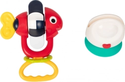 Bilele zornăitoare integrate și partea superioară rotativă susțin percepția auditivă și dezvoltarea motricității fine.