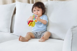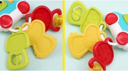 Cheile colorate cu texturi diferite susțin prinderea, transferul dintr-o mână în alta și dezvoltarea coordonării mână–ochi.