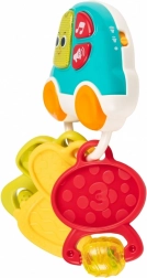 Copilul poate, prin apăsarea butoanelor, să pornească efecte luminoase și sunete de mașină, prin scuturare să asculte zornăitoarea, iar prin manipularea cheilor să exerseze motricitatea fină și coordonarea mână–ochi. Jucăria este ușoară și portabilă, astfel încât o puteți lua cu ușurință la plimbare sau în excursie.