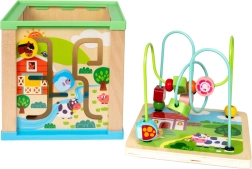 Cubul activ din lemn cu labirint și ceas este alegerea ideală pentru părinții care doresc să le ofere copiilor lor o distracție valoroasă și educativă. Datorită construcției solide și funcțiilor variate, va deveni cu siguranță un companion îndrăgit al aventurilor zilnice ale celor mici.