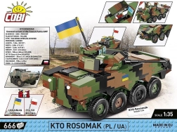 Setul de construcție al modelului Rosomak la scară 1:35 oferă posibilitatea unei asamblări detaliate completată cu axe de roți rotative, trape deschizătoare și imprimări precise ale Armatei Poloneze. Pachetul include și două stegulețe care reprezintă țările care utilizează acest tip de vehicul – Polonia și Ucraina. Tabelul cu numele vehiculului poate fi expus alături de model!