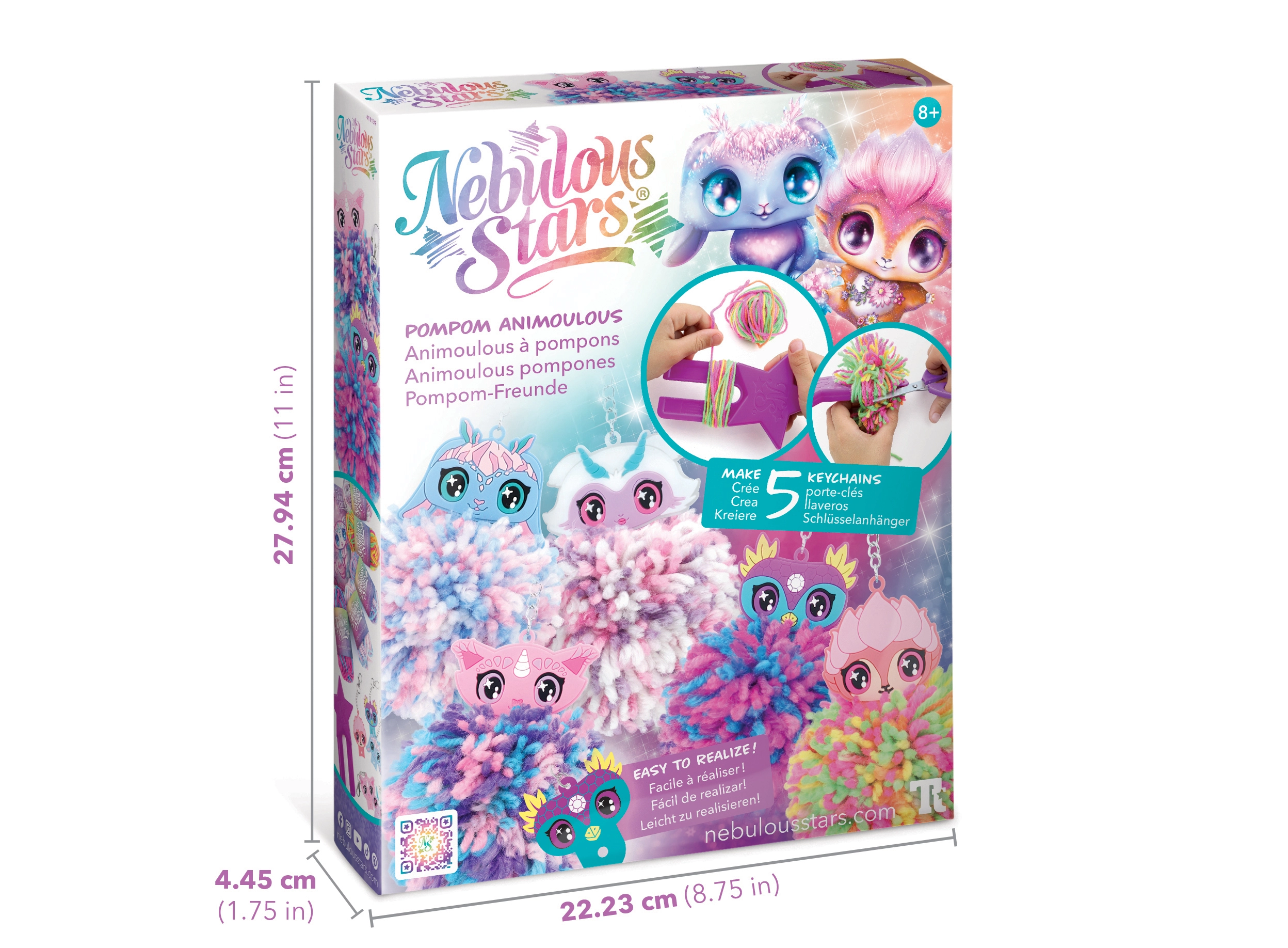 Creează brelocuri drăgălașe din ciucuri în lumea magică Nebulous Stars. Setul conține tot ce ai nevoie: 5 suporturi pentru ciucuri cu Animouš, fire acrilice colorate, instrument pentru realizarea ciucurilor și instrucțiuni ilustrate. Ideal pentru dezvoltarea creativității, a motricității fine și pentru decorarea cheilor, rucsacurilor sau genților.