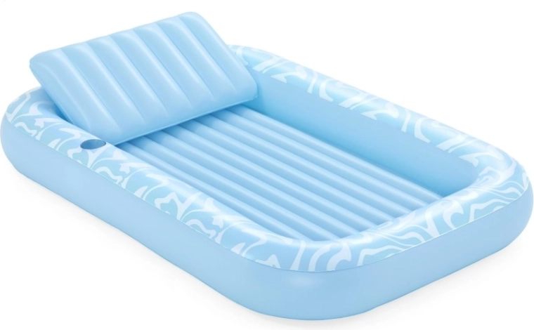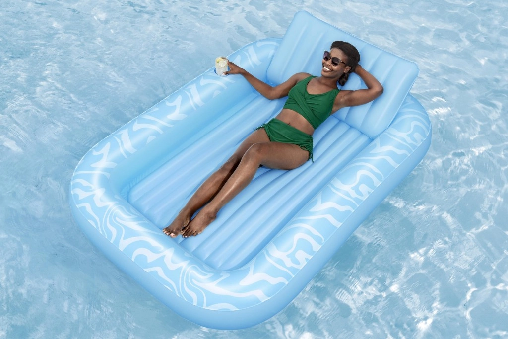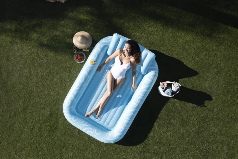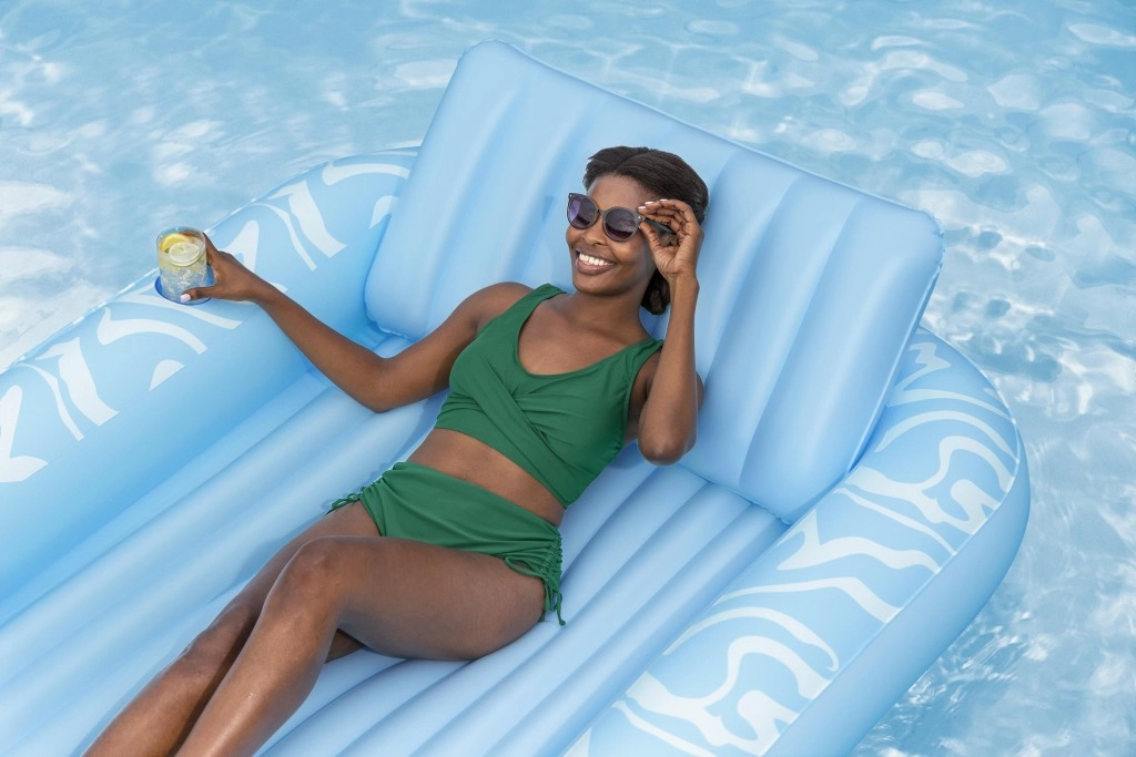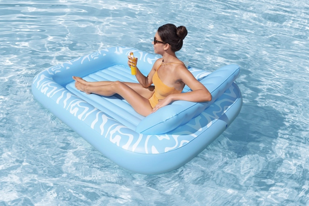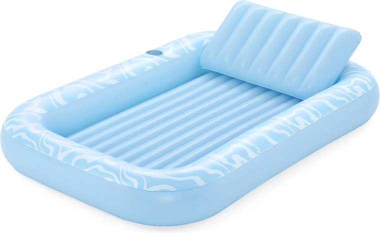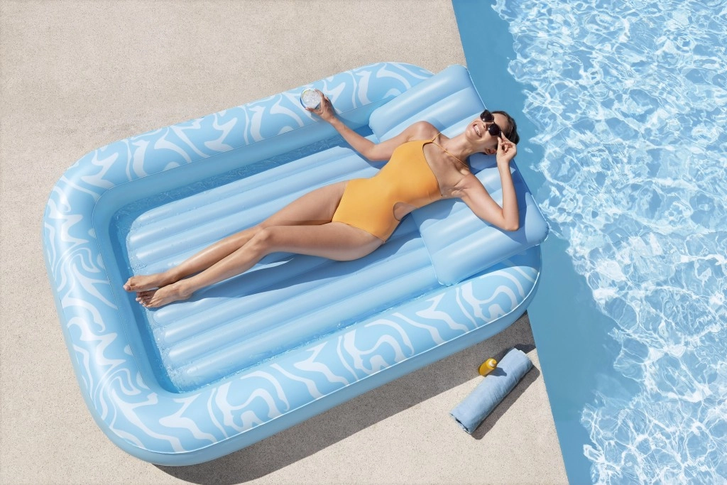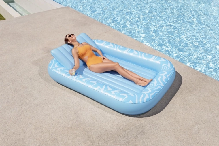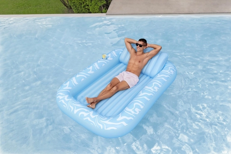 Tetiera înălțată și moale relaxează gâtul și umerii, astfel încât să vă bucurați de o relaxare prelungită fără disconfort – atât în apă, cât și pe uscat.