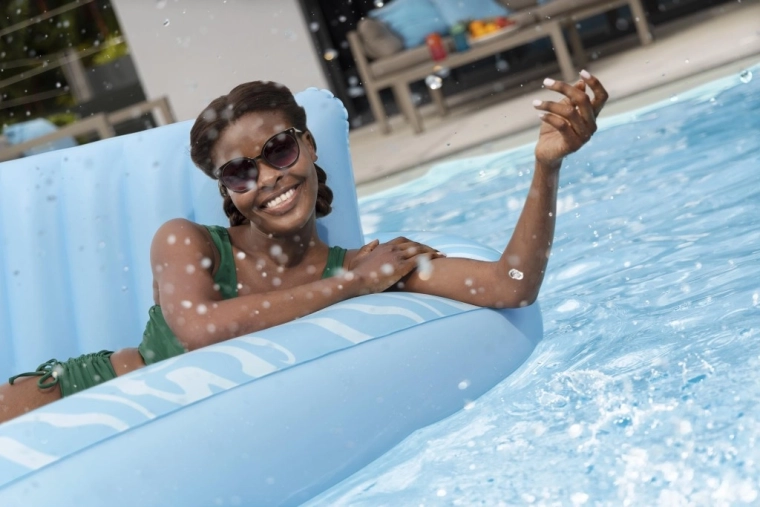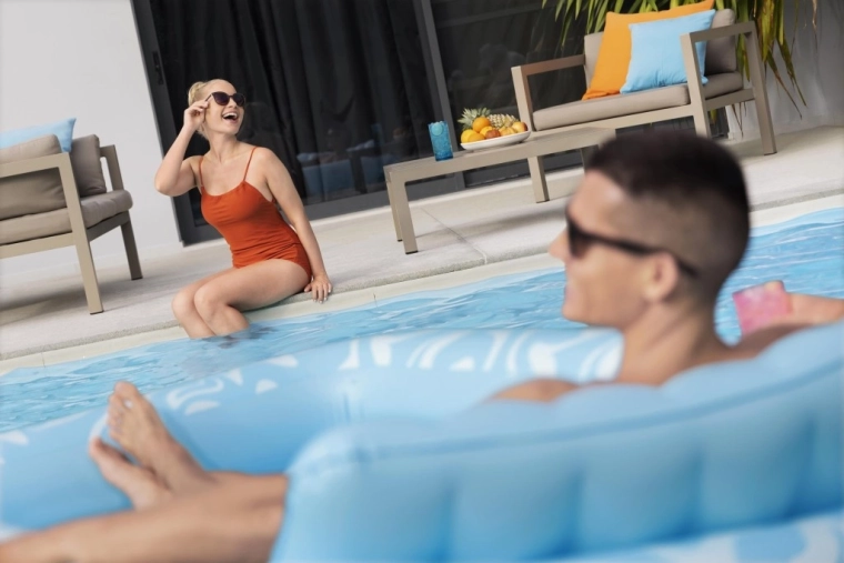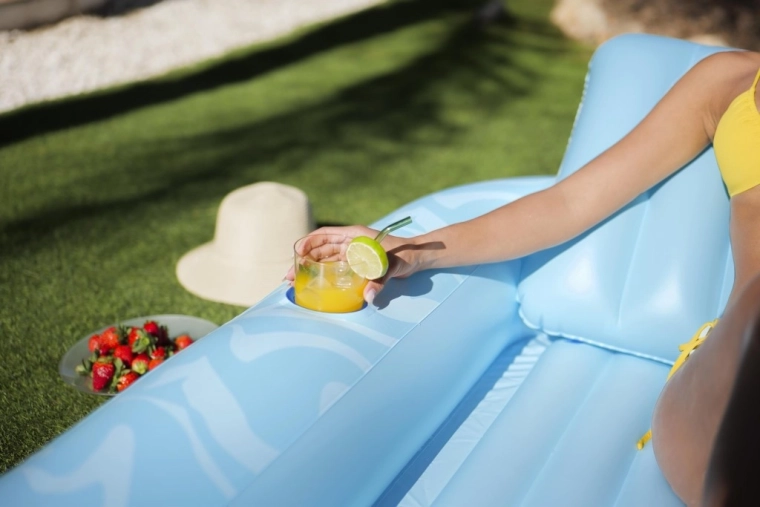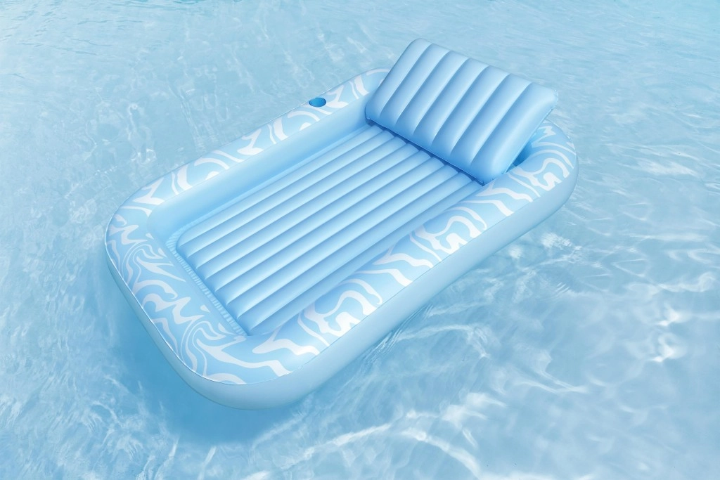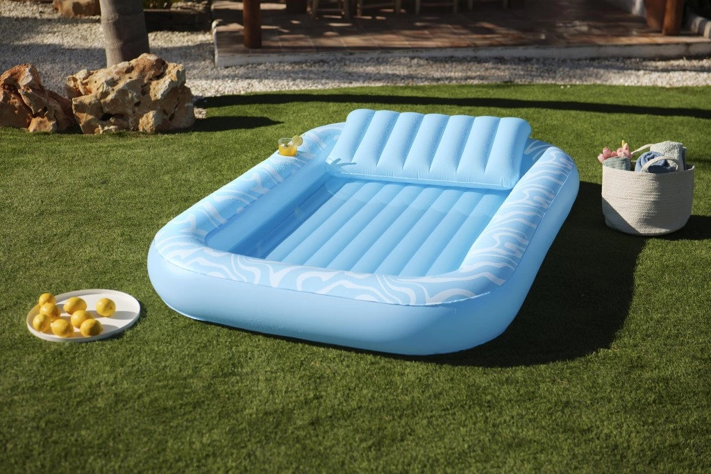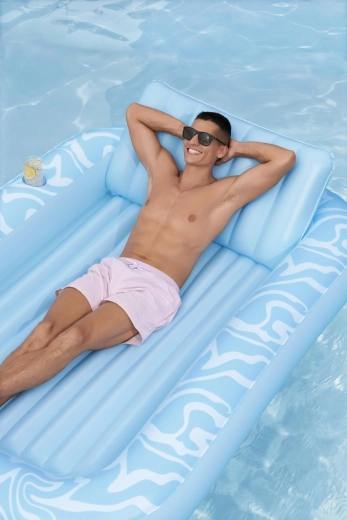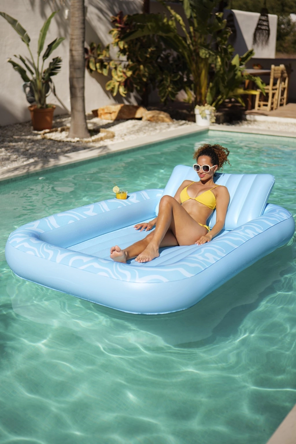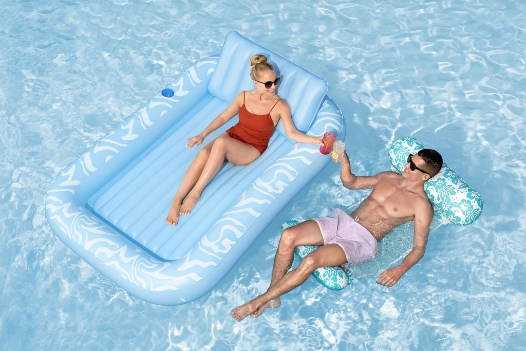 Tetiera înălțată și moale relaxează gâtul și umerii, astfel încât să vă bucurați de o relaxare prelungită fără disconfort – atât în apă, cât și pe uscat.