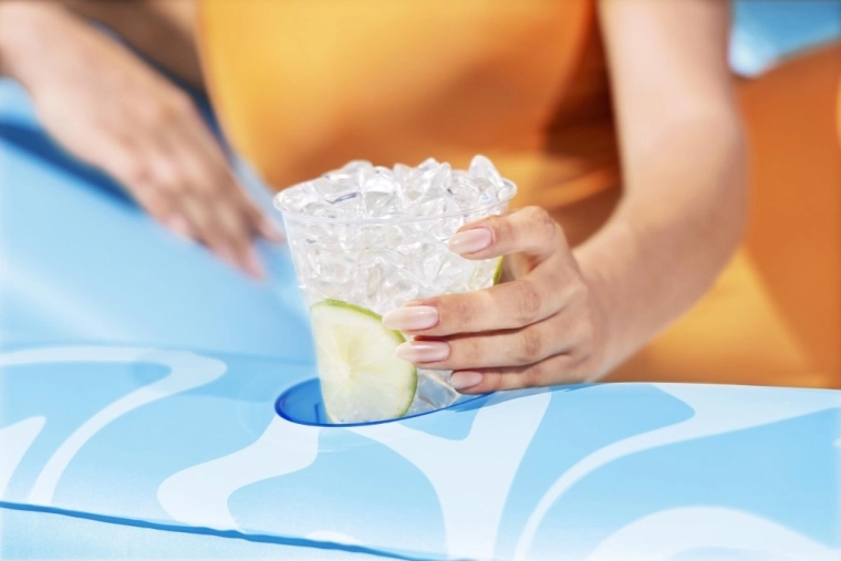 Băutura preferată va fi mereu la îndemână. Suportul integrat menține sticla sau paharul în siguranță chiar și când vă mișcați pe luciul apei.
