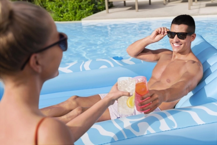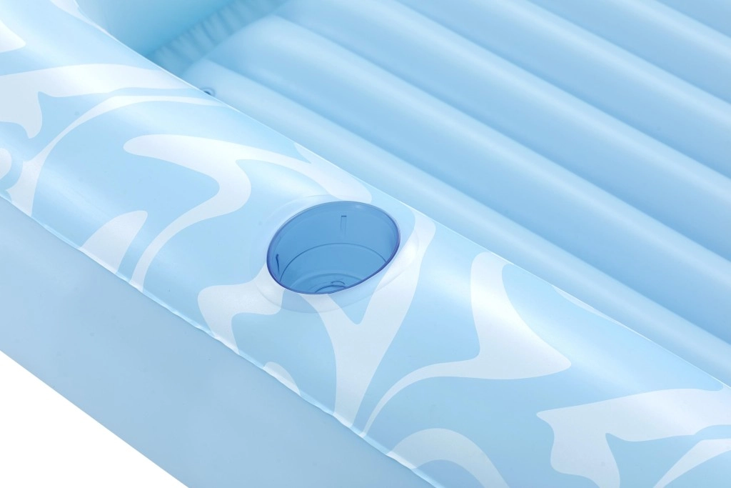 Salteaua Sun-Kissed este concepută pentru relaxare plăcută la piscină sau în grădină. Suprafața lată, conturată, cu umplutură striată susține confortabil întregul corp, iar tetiera înălțată oferă confort la plajă sau la citit. Datorită suportului pentru băutură, aveți mereu la îndemână băutura răcoritoare.