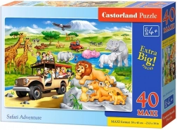 Descoperă lumea animalelor cu puzzle-ul de podea CASTORLAND Aventuri în safari. Cu 40 de piese MAXI rezistente, asamblarea este clară și distractivă chiar și pentru copiii mai mici. După asamblare, se obține o imagine frumoasă cu animale de safari, care poate fi expusă sau reasamblată iar și iar.