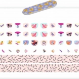 - Conținutul setului: 30 de autocolante pentru unghii, 10 autocolante mai mici, 1 bandă de modele de decupat, 1 pilă pentru unghii.