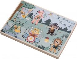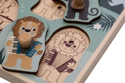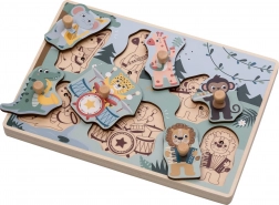 Descoperă lumea junglei cu un puzzle din lemn sigur, care, după introducerea corectă a piesei, redă sunetele fiecărui animăluț. Copiii exersează cu ușurință recunoașterea formelor și învață să asocieze imaginea cu sunetul.