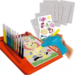 - Pistol automat de pulverizare, 10 markere colorate, centru de desen, șabloane, ghid