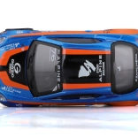 Schemu coloristică albastru‑portocaliu cu numărul 76 și logo-uri de sponsori reproduce fidel mașina reală de competiție, făcând din acest model o piesă atractivă pentru colecție.