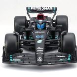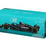 Formele, vopseaua și logourile sponsorilor MERCEDES‑AMG PETRONAS F1 W14 (2023) sunt redate fidel, cu numărul de concurs 63 pentru George Russell.