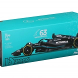 Acest model licențiat oficial MERCEDES‑AMG PETRONAS F1 W14 (2023) de la Bburago surprinde fidel formele, culorile și detaliile monopostului sezonului 2023, inclusiv numărul de concurs 63 pentru George Russell. Colorația neagră cu accente turcoaz, inscripțiile precise ale sponsorilor și elementele iconice precum halo sau aripile conferă un aspect realist.