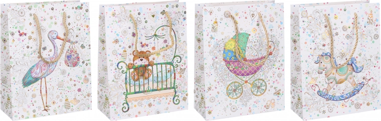 Pungă cadou mare pentru copii, cu dimensiunile 42 × 31 × 12 cm, ideală pentru ambalarea jucăriilor și a altor surprize. Oferă format încăpător, ambalare rapidă și curată și 4 modele vesele pentru orice ocazie.