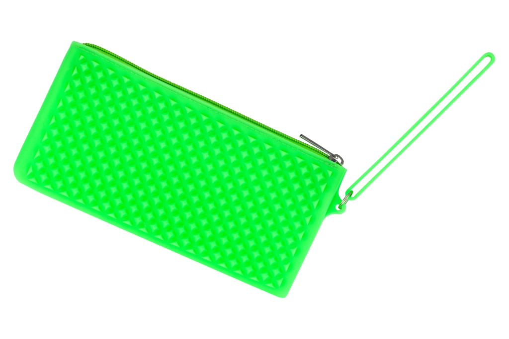 Un etui din silicon stilat și practic de la marca BAAGL în culoarea verde neon este soluția ideală pentru depozitarea rechizitelor și a altor mărunțișuri.