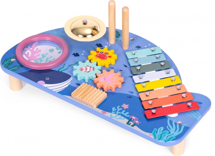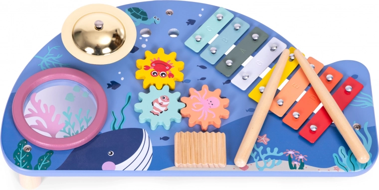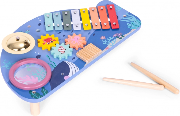 Prezentăm o măsuță muzicală unică pentru copii, care va dezvolta abilitățile muzicale ale copilului dumneavoastră. Motivul său oceanic și construcția sigură fără margini ascuțite asigură faptul că este potrivită pentru copii de la 18 luni.