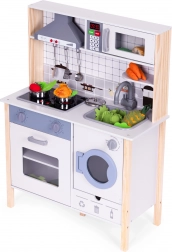 Această bucătărie din lemn de la ECOTOYS este jucăria ideală pentru toți micii bucătari. Potrivită pentru copii de la 3 ani, se remarcă prin construcția solidă și echiparea realistă, care stimulează creativitatea și dexteritatea copiilor.