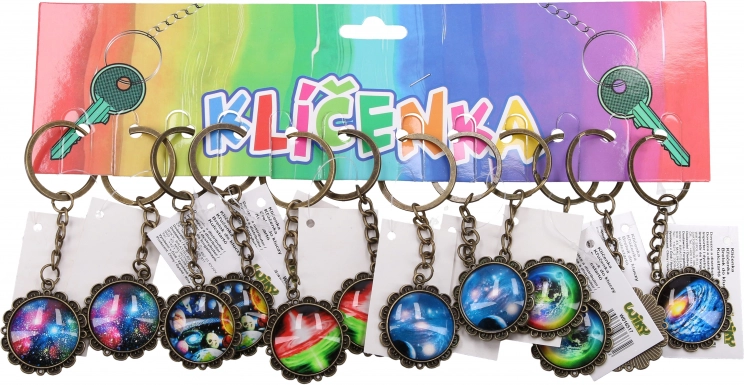 Brelocul rotund, stilat, cu motiv spațial îi va încânta pe iubitorii de stele și planete. Oferă design original, prindere ușoară la chei sau rucsac și este ideal ca mic cadou.