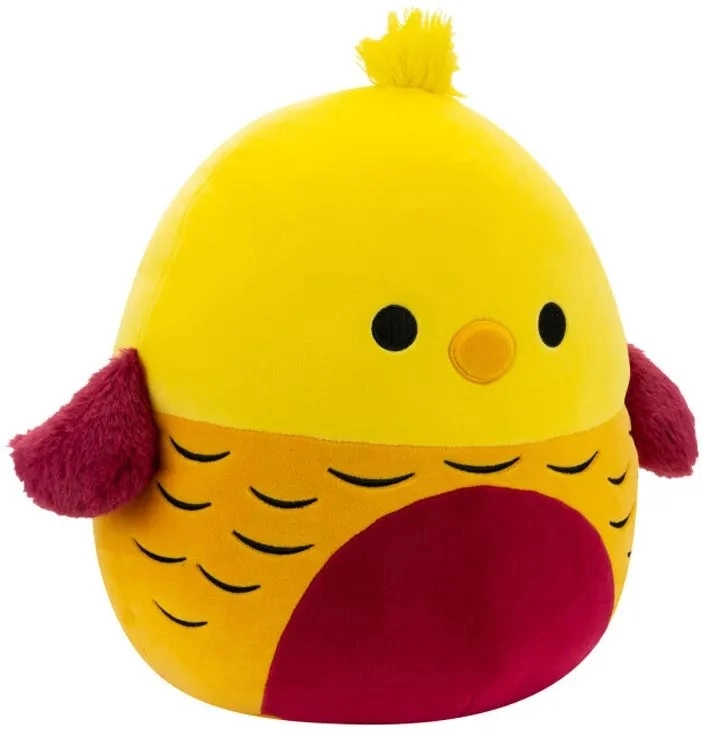 Squishmallows Beck este o păsărică rotundă galbenă, cu „pene” din pluș fin, aripioare accentuate și un cioc drăgălaș. Datorită materialului plăcut și dimensiunii confortabile de 30 cm, se ține perfect în brațe și cucerește rapid inimile celor mici și mari.