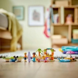 Acest set colorat stimulează creativitatea, imaginația și jocul de rol. Copiii se vor bucura să construiască și să reconstruiască trei scene diferite de plajă datorită designului ingenios 2‑în‑1. Sunt incluse două mini-păpuși și figurinele unui cățel și ale unui delfin, plus accesorii grozave precum placă de surf, radio, pizza, cremă de protecție solară și înghețată.
