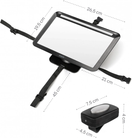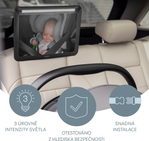 Oglindă excelentă pentru părinții care doresc să aibă siguranța copiilor lor sub control chiar și în timpul deplasării. Oglinda este echipată cu trei niveluri de iluminare LED, care asigură o vizibilitate perfectă chiar și în întuneric. Datorită instalării ușoare cu ajutorul curelelor ajustabile, oglinda poate fi fixată ferm și sigur pe tetieră. Este fabricată din materiale durabile pentru a rezista utilizărilor prelungite.