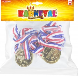 Oferiți fiecărui mic învingător bucuria victoriei. Medaliile aurii cu inscripția WINNER și steluțe au un aspect reprezentativ și, în același timp, sunt sigure și ușoare datorită materialului PVC. Datorită panglicii în culorile tricolorului, se poartă confortabil și se distribuie ușor la concursuri sau evenimente.