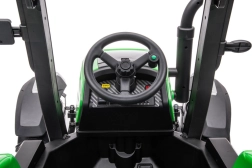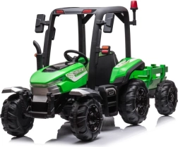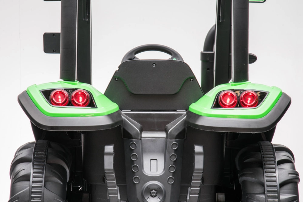 Acest tractor cu acumulator este proiectat pentru copiii care iubesc să descopere lumea tractoarelor. Designul verde și negru, împreună cu roțile rezistente, asigură durabilitate și adaptabilitate pentru diverse terenuri.