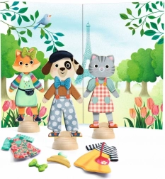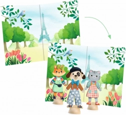 Cu Djeco colaj Bonjour Paris, copiii îmbracă figurinele din lemn în ținute stilate și își creează propriile aventuri pariziene. Piesele rezistente, reutilizabile se manevrează ușor, se fixează foarte bine și invită la joacă nelimitată, care susține creativitatea, povestirea și motricitatea fină.