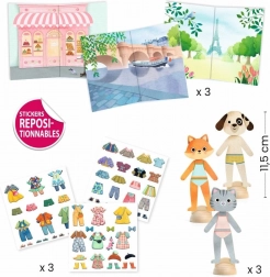Porniți spre Paris cu setul creativ de la Djeco și lăsați copiii să-și creeze propriile povești. Îi așteaptă 3 figurine din lemn cu suporturi, peste 45 de haine reutilizabile și un ghid ilustrat pentru descoperire ușoară. Activitate de colaj ideală pentru copiii de 3–6 ani, care dezvoltă imaginația și motricitatea fină.