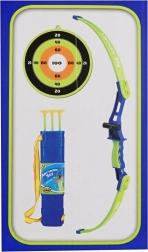 Acest set complet pentru micii arcari conține tot ce au nevoie copiii pentru un antrenament sigur al ochirii: arc din plastic cu lungimea de 70 cm, 3 săgeți cu ventuze, toc pentru săgeți de purtat pe umăr și o țintă colorată. Datorită ventuzelor, săgețile aderă sigur pe suprafețe netede, astfel că jocul este potrivit atât în camera copilului, cât și în grădină.