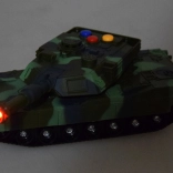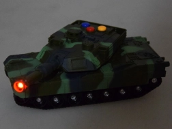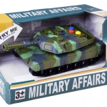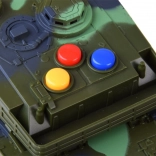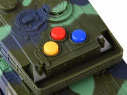 Tancul militar este realizat din plastic de calitate, care asigură un aspect realist și durabilitate. Tancul este echipat cu trei butoane colorate care simulează sunete realiste, precum mersul, pregătirea și tragerea proiectilului sau sirena. La fiecare apăsare de buton veți simți atmosfera autentică a acțiunii de pe câmpul de luptă.