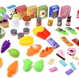 Include 71 piese de accesorii, inclusiv fructe, legume, produse de panificație și chiar bani realizați realist, permițând copiilor joacă nelimitată.