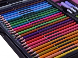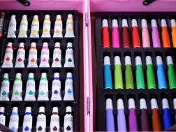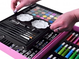 Setul include culori, pensule, creioane colorate și multe altele, ideal pentru crearea diferitelor lucrări de artă.