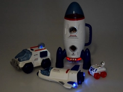 Racheta și vehiculele oferă multe oportunități pentru jocul interactiv datorită ușilor deschise, efectelor sonore și luminoase. Acest lucru va face ca fiecare copil să fie fascinat de posibilele aventuri cosmice și să se lanseze într-o aventură spațială care va impresiona fiecare mic curios astronaut.