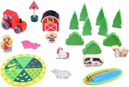 Setul include elemente autentice de fermă, precum hambar, tractor și diverse figurine de animale, permițând copiilor să-și creeze propriul univers de fermă.