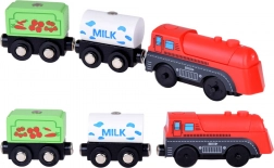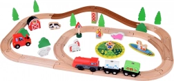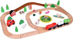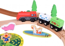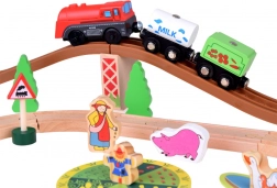 Acest set de tren din lemn este perfect pentru dezvoltarea imaginației și abilităților motorii ale copiilor. Calitatea înaltă a prelucrării cu culori și modele atractive asigură siguranță și distracție de durată. Locomotivă cu baterii (alimentată cu o baterie AAA de 1,5 V, bateriile nu sunt incluse) se deplasează lin pe șine și fascinează cu un efect luminos.