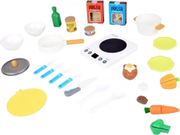 Datorită plitei interactive și varietății de accesorii, copiii se vor bucura de nenumărate ore de jocuri distractive imitând gătitul.