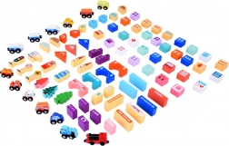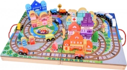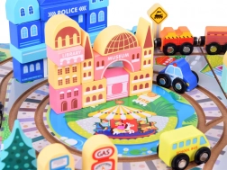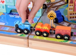 Descoperiti lumea fascinanta a constructiilor din lemn cu acest set de oras din lemn, care aduce 89 de elemente de distractie. Setul include sine, trenuri pe baterii si diverse blocuri colorate pentru a construi cladiri unice.