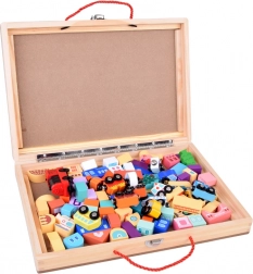 Contine o cutie de lemn usoara pentru o manipulare si portabilitate usoara, permitand depozitarea tuturor blocurilor de constructie.