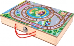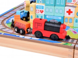Fabricat din lemn ecologic si culori pastel, aceasta jucarie asigura jocuri durabile si este un cadou excelent pentru micii iubitori de trenuri si jocuri creative.