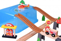 Rețeaua de trasee înconjoară orașul, permițând copiilor să planifice rutele și să-și creeze propriile lor povești. Trenul mobil poate transporta pasageri și bunuri pentru situații de joc realiste.