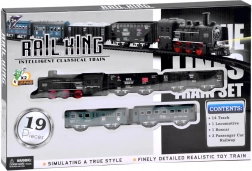 Calea ferată electrică este fabricată cu expertiză, acordând atenție detaliilor. Trenul este propulsat de o locomotivă cu aburi clasică, având două vagoane de pasageri și două vagoane de marfă. Unul dintre vagoanele de marfă este deschis, permițând copiilor să transporte diverse obiecte mici. Locomotiva cu aburi este dotată cu o lampă luminoasă, sporind atractivitatea jocului.