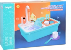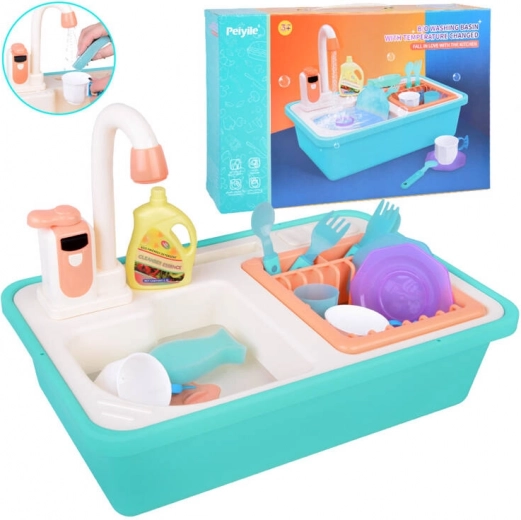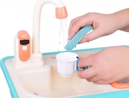 Funcții: Doar umpleți rezervorul cu 2,2 litri de apă, rotiți robinetul și observați cum apa circulă. Chiuveta poate fi înfundată cu dopul inclus, învățând copiii să economisească apă și să protejeze mediul. Robinetul este alimentat de 2 baterii AA (neincluse).