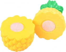 În ambalaj veți găsi diverse tipuri de fructe: portocală, pepene verde, banană, ananas, struguri, kiwi, măr, pară, căpșună și fructul dragonului.