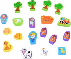 Cărămizile noastre colorate din lemn Farmă sunt jucăria ideală pentru copiii de la 3 ani. Datorită celor 100 de piese variate, copiii pot construi diverse structuri, de la clădiri la ferme, ceea ce le stimulează creativitatea și dezvoltarea imaginației.