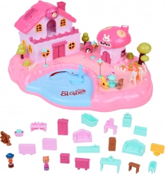 Descoperă casa fermecată din grădină: o căsuță deschisă cu magazin în formă de băscuță de ciupercă roșie, lac cu controler și loc de joacă, care îi invită pe copii la povești nesfârșite. Inducția magnetică ascunsă pune în mișcare figurinele și detaliile decorului – este suficient să glisezi controlerul pe lac și să le lași să pornească spre grădină, locul de joacă sau magazin.